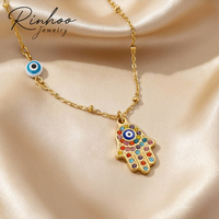 RINHOO Stainless Steel Turkish Hamsa Evil Blue Eye Necklaces Women Gold Color Shiny Zircon Blue Eyes Pendant Choker Party Charm