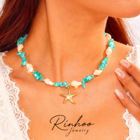 RINHOO Bohemian Starfish Conch Pendant Necklaces For Women Colorful Irregular Stone Choker Neck Chain Summer Beach Party Jewelry
