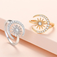 Sol Lua Anéis Mulheres Jóias Da Moda por atacado Criativo Micro Incrustada Zircão Prata Ouro Abertura do Anel Ajustável