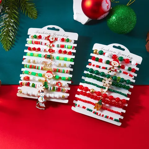 10 Pcs/Set Natal Crystal Clay Beads Pulseira para As Mulheres Multi Camada Papai Noel Xmas Tree Snowflake Letter Pulseiras Jóias