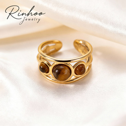 Rinhoo เทรนด์ Maillard แหวนสแตนเลสสำหรับผู้หญิงแหวนนิ้วหินธรรมชาติทรงกลมเรขาคณิตเรียบง่ายของขวัญเครื่องประดับวินเทจ