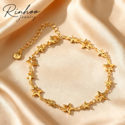 Rinhoo สร้อยคอชุบทอง18K สแตนเลสจี้หัวใจปลาดาวผ้าดอกไม้ปรับได้กันน้ำของขวัญผู้หญิง